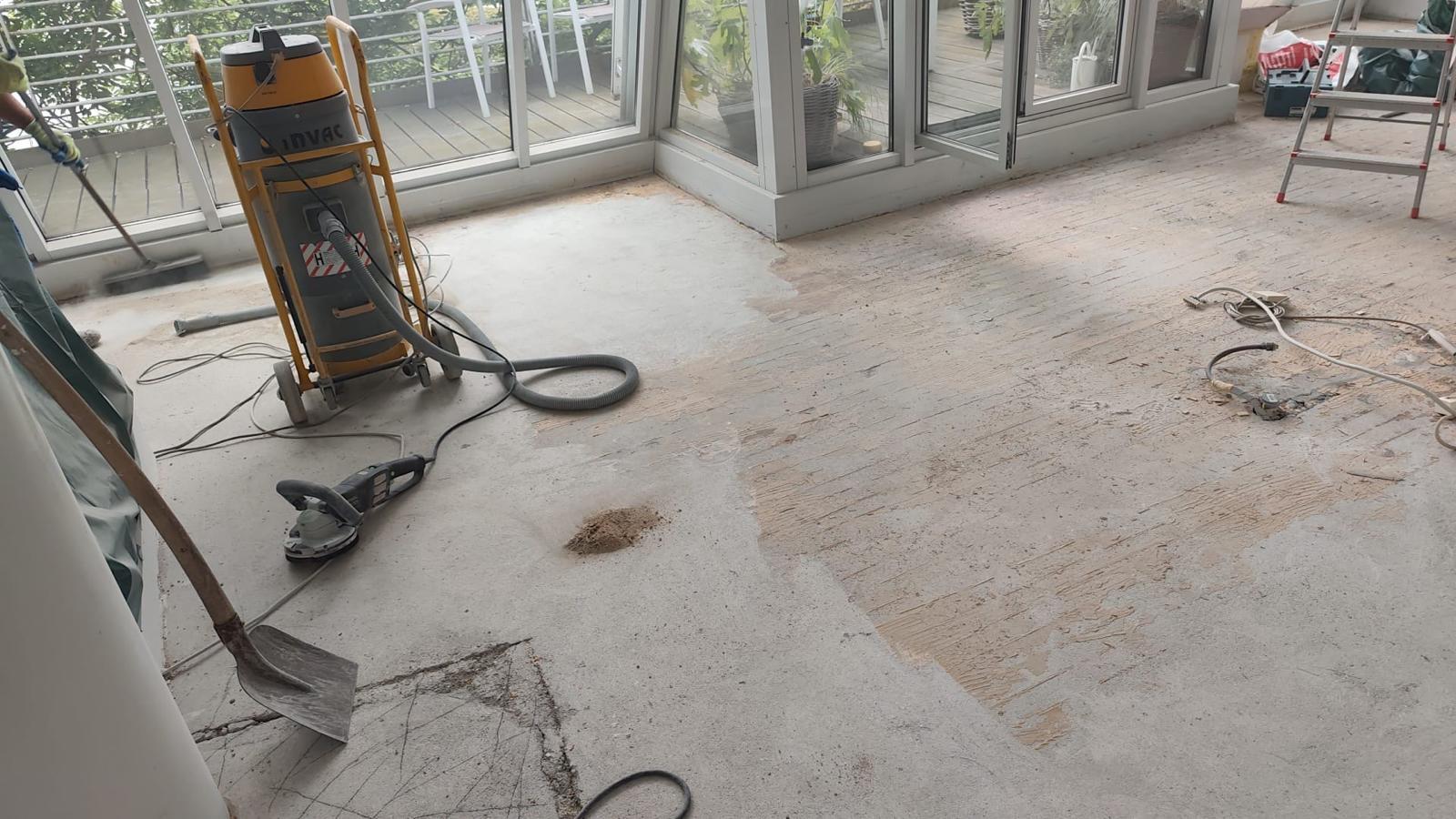 Entfernung von Kleberesten: Beseitigung von hartnäckigem Fliesenkleber, Teppichkleber oder Parkettkleber.